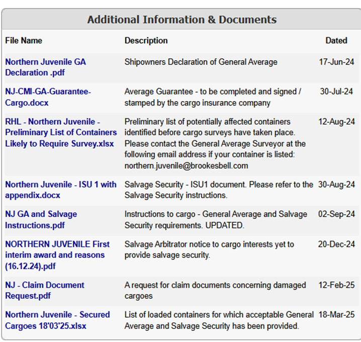 3月,Frad风险管理就NORTHERN JUVENILE 共同海损及救助担保,为货方提供专业支持。
