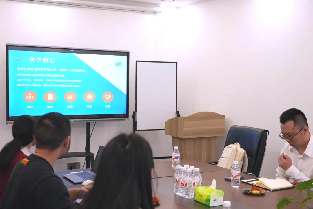 此次商务洽谈在双方简单介绍后进入正题,Frad跨境电商项目团队向紫金财险代表团介绍了产品开发的背景与市场运营的情况,并展示了Frad风险管理在跨境物流风险智能化管控方面的优势、相应的实践案例和成果。