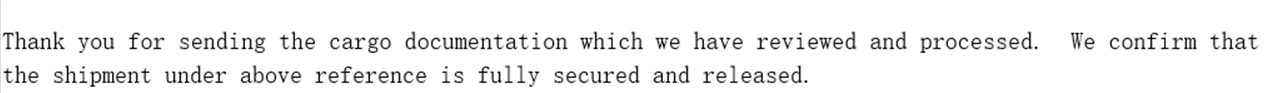 截止2025年9月4日,Frad风险管理已协助多家保险公司与共损理算人建立紧密沟通,目前由我们出具担保的绝大部分货物已获确认放行。
