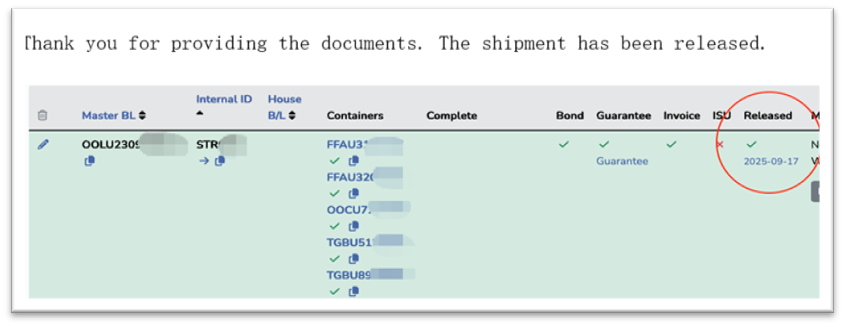 截至2025年9月17日 ,Frad风险管理已协助数十家中国保险机构办理共同海损担保函,所涉上百个集装箱货物的担保均获理算师确认并放行。
