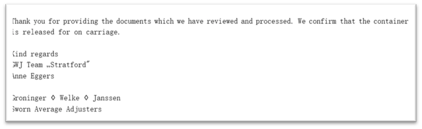 凭借其20年深耕国际货运险领域的经验(累计处理案件超万宗,涉案总金额逾20亿美元)、多语言专业团队及覆盖170多个国家的服务网络,Frad风险管理在事故发生后即与Groninger建立直接沟通,并在一周内协助多家国内保险公司客户完成担保文件准备,最终出具符合理算师要求的共同海损担保函。