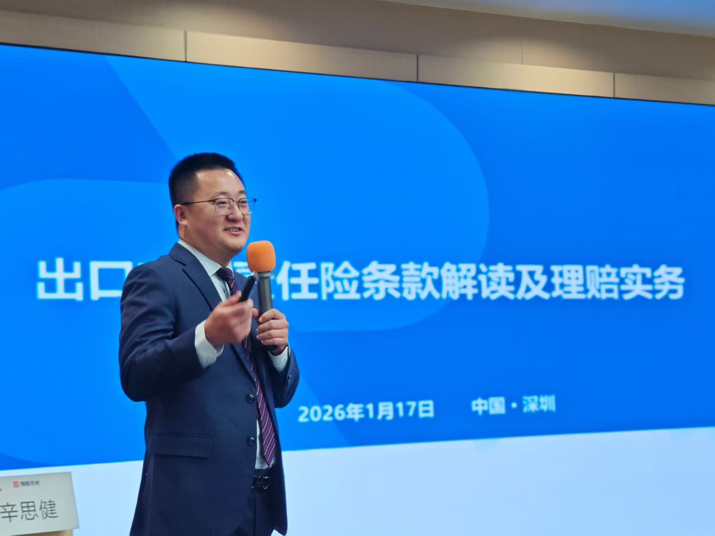 2026年1月17日,由前程无忧组织、面向深圳人保非车险理赔分部人员的“出口相关保险实务专题培训”在深圳圆满举行。本次培训特邀Frad风险管理总经理辛思健担任主讲嘉宾,围绕出口产品责任险与共同海损两大核心主题,展开深度解读与实务分享,助力人保团队提升专业能力,更好地服务企业出海。
